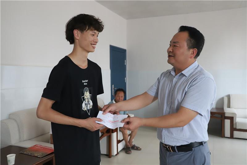 执行理事长谢向前向吴林洁一家表示了祝贺和感谢,为该生送上5000元高考奖学金,并勉励其再接再厉,刻苦学习,要牢记母校教诲,不负青春,为以后报效祖国、服务社会打下坚实的基础。