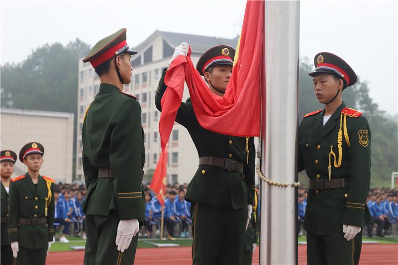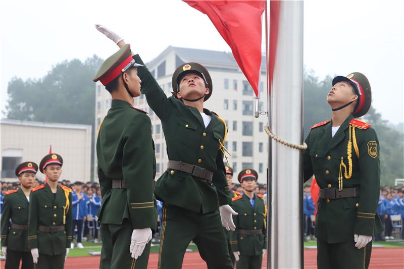 在雄壮的国歌声中,五星红旗冉冉升起。全体师生的目光追随着缓缓上升的五星红旗,坚定的眼神里是骄傲,是自豪,是未来,是希冀。