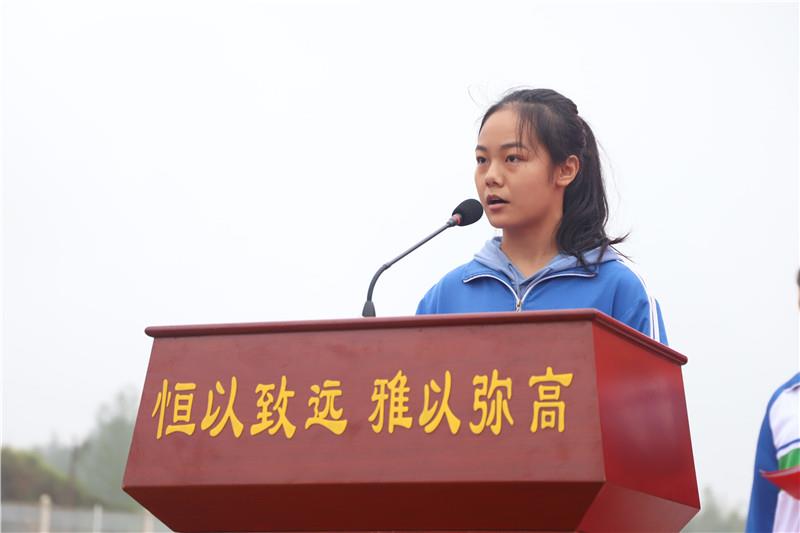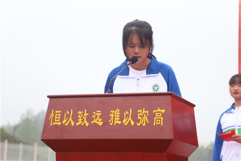 学生代表1802班姚湘粤同学立下铮铮誓言,要像雄鹰直冲云天,像水手乘风破浪,以汗水浇灌,用智慧耕耘,夺取六月桂冠。