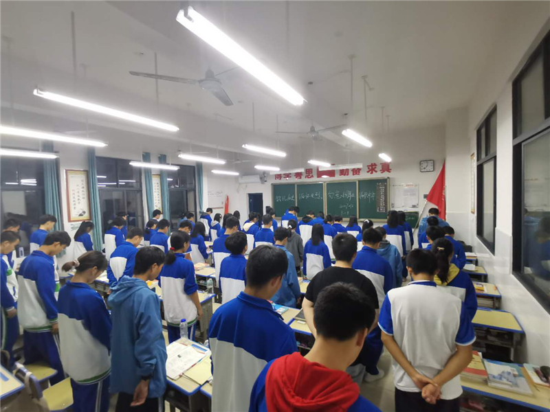 18日晚上7点整,防空警报响彻校园的每个角落,2200余名学生在教师的引导下全体起立,默哀三分钟。随后,由2014班杨小樱同学做9.18事变勿忘国耻演讲。向学生生动讲述“9·18”事件,从中学生抓起加大爱国主义教育,培育学生爱国主义情操。