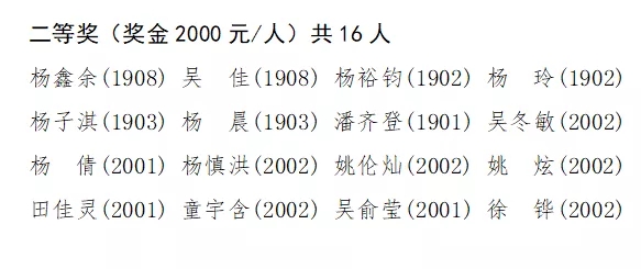 二等奖学金名单如下: