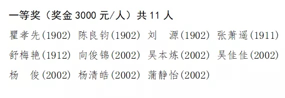 特等奖学金名单如下: