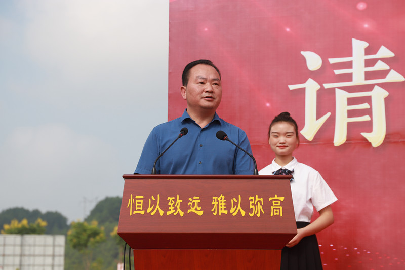 在开学典礼上,廖校长作了《在恒雅,遇见更好的自己》主题讲话,并和同学们分享了对联中恒心、壮志、雅韵、雄才四个关键词,勉励教师敬业,鼓励学生进步。
