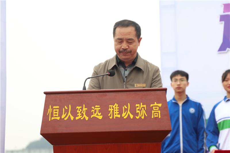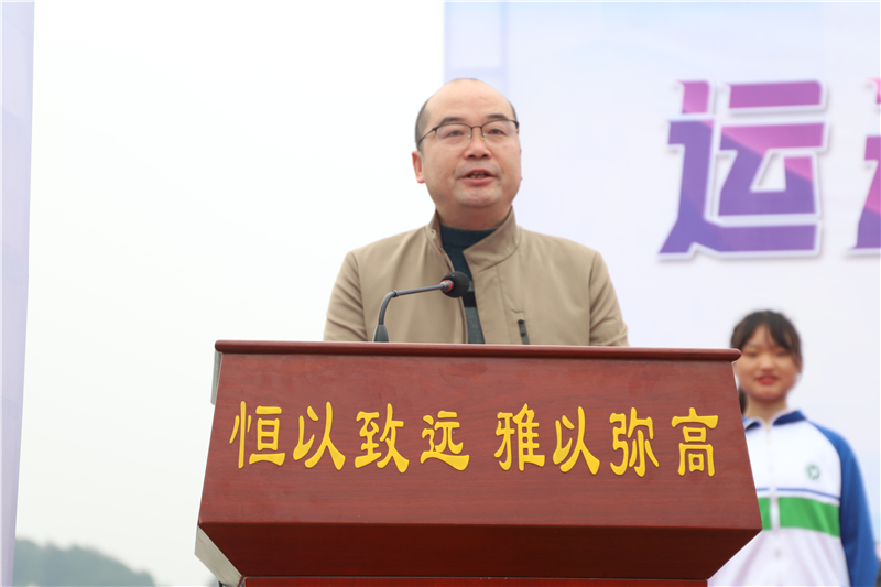 教育局副局长杨清辉先生讲话他强调参加体育运动不仅仅是一场体能、技术、水平的较量,是对同学们的生活品位、精神品格、意志品质的一次大检阅。运动不仅仅是为了健康,它更是充满灵动的生活时尚,是一种充满韵律的生活情趣,是一种充满活力的生活态度。